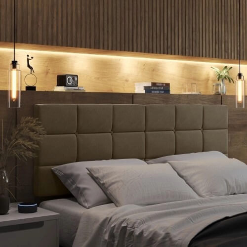 A Cabeceira de Cama Estofada da Cabana Real traz conforto e estilo ao seu quarto, perfeita para relaxar e complementar a decoração.