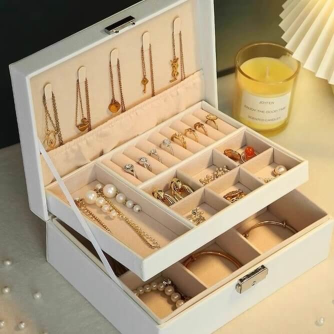 Manter suas joias organizadas e protegidas nunca foi tão fácil! A Maleta Porta-Joias Cabana Real oferece o espaço ideal para guardar seus acessórios com segurança e elegância.